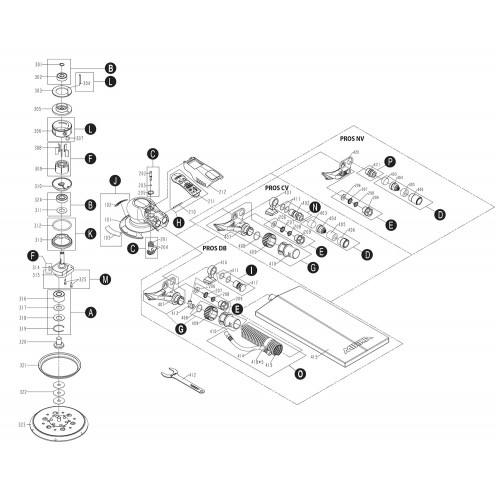 - Kit M dans la liste des pièces détachées (photo : pièces 315 et 325 )